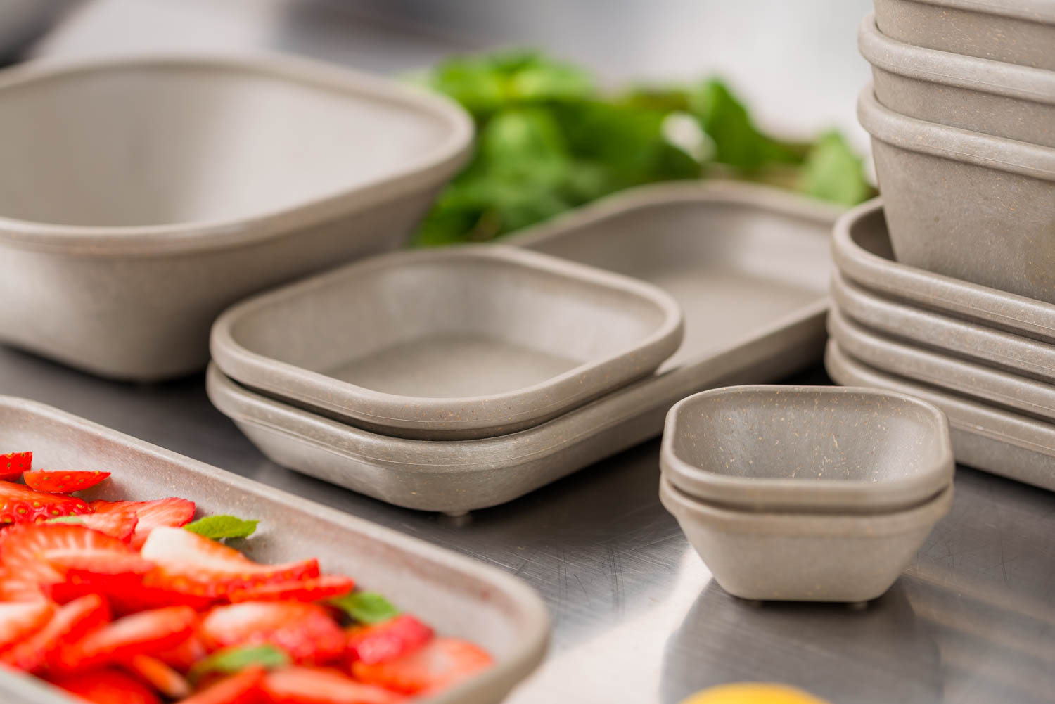 La gamme de vaisselle Kiobox est unique sur le marché, parce que dès le départ, elle a été entièrement pensée pour le take away et les livraisons à domicile.